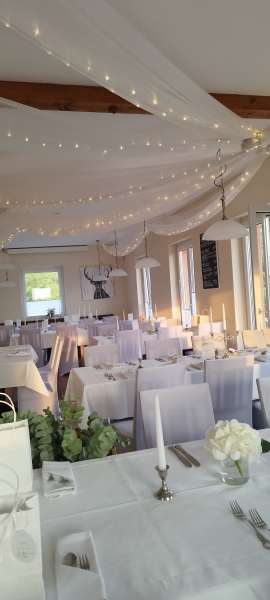 | Besonderheiten / Zusatzleistungen | Stuhlhussen, Decken-Licht-Tülldekoration |