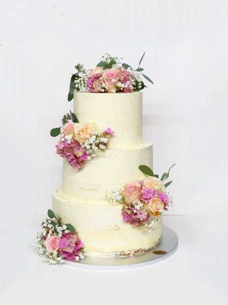Deine Hochzeitstorte kann bei uns individuell nach Deinen Wünschen zusammengestellt werden. Willst Du eine Naked Cake, eine fondantfreie Hochzeitstorte oder eine Semi Naked Cake? Kein Problem und dazu auch mega lecker! Ob Deine Hochzeitstorte mit frischen Blumen, mit Trockenblumen oder nur mit frischen Früchten ausdekoriert werden soll, liegt es in Deiner Hand.