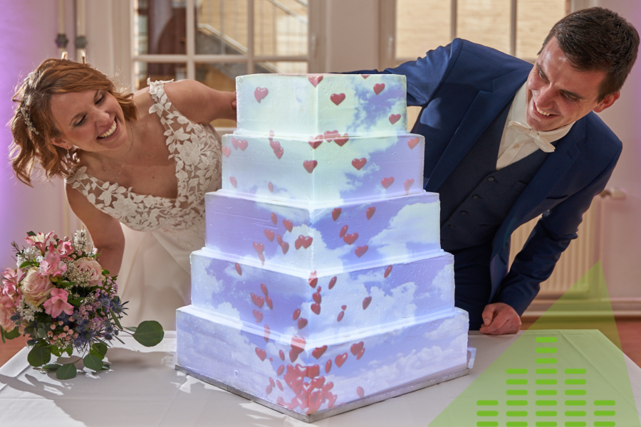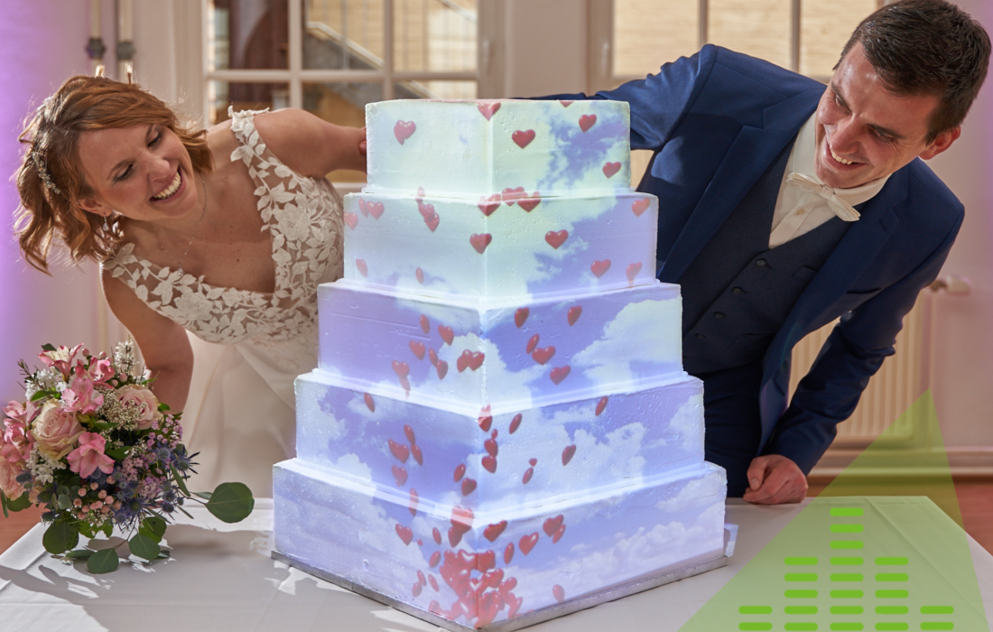 - Wir kümmern uns um die Lieferung, Auf- und Abbau der Hochzeitstorte und des Equipments für Eure persönliche Projektion
