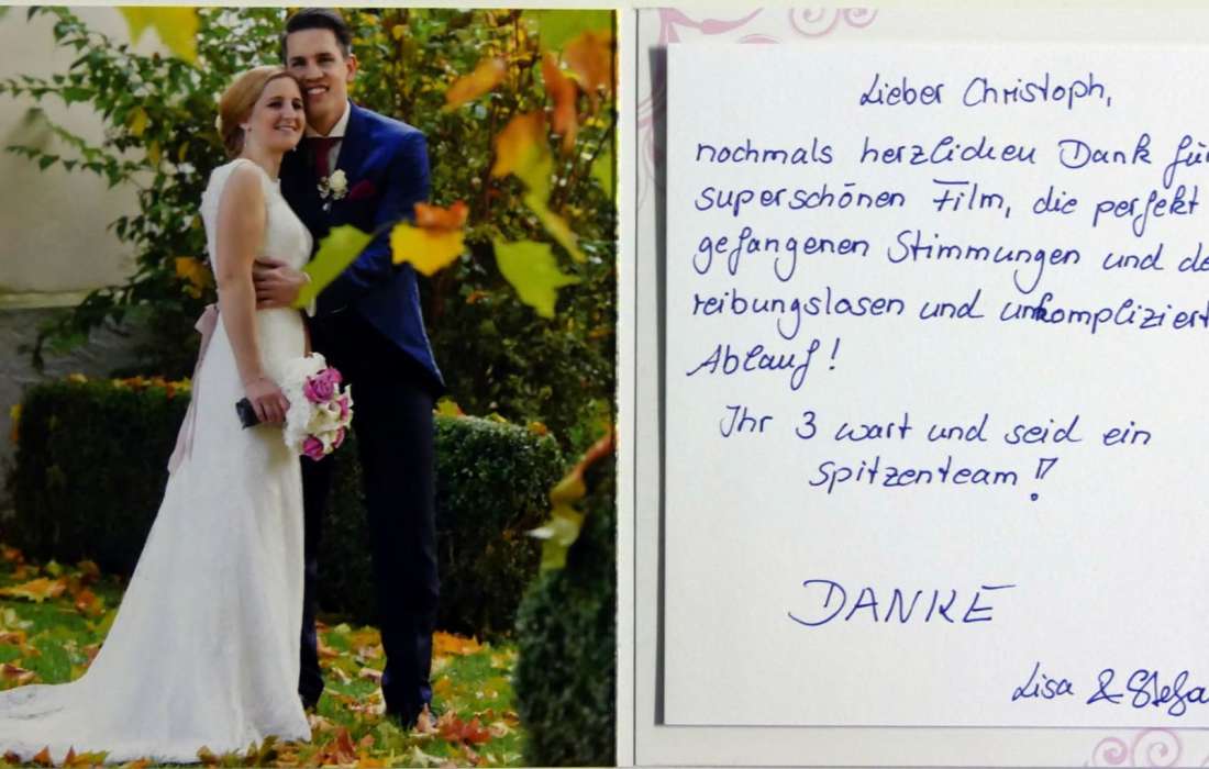 Wir haben am 19.05.2025 standesamtlich und kirchlich geheiratet und das Filmteam hat unseren großen Tag von 5:00 Uhr früh bis zum Schluss um ca. 00:30 Uhr begleitet! Wir sind beide noch nie vor einer Kamera gestanden, doch mit ihrer herzlichen Art konnten sie uns die Angst ganz schnell nehmen! Das Filmteam teilte sich in der früh auf, sodass sowohl das „getting ready“ der Braut, als auch das Weißwurstfrühstück des Bräutigams eingefangen werden konnte. Sogar mit einer Drohne haben sie uns zum Beispiel bei der Autofahrt begleitet. Als wir den fertigen Film wenige Wochen nach der Hochzeit bekamen, ließ es sich die Qrew um Christoph Benning nicht nehmen sogar persönlich bei der 1. Vorstellung dabei zu sein! Wir und die ausgewählten Zuschauer waren von dem Ergebnis begeistert! Der fertige Film ist ca 1h lang und alle wichtigen Momente unseres großen Tages wurden festgehalten. Man merkt mit wie viel Liebe und Leidenschaft das Team arbeitet und die Magie dieses Tages eingefangen hat. Auf jeden Fall das Geld wert und unsere größte Empfehlung!