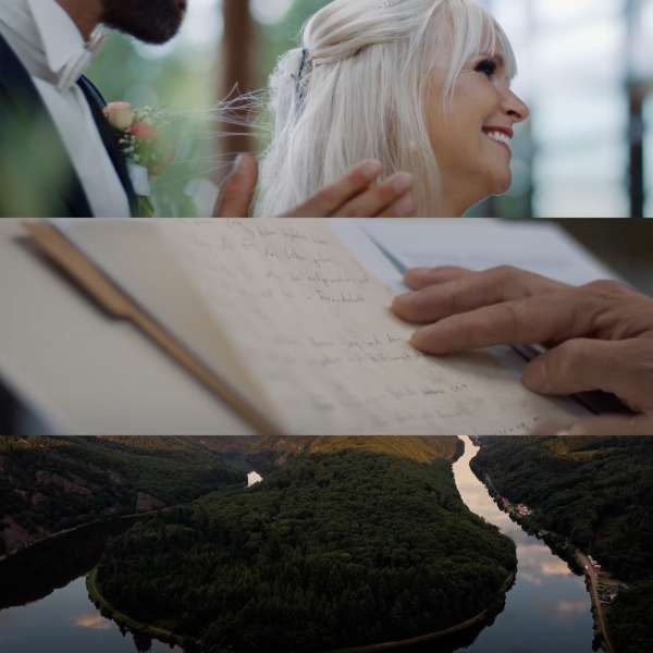 Ihr Hochzeitsfilm als bleibende Erinnerung. Professionell produziert und hochwertig ausgearbeitet. Damit Ihr schönster Tag auch nach Ihren Wünschen in Bild und Ton festgehalten wird, legen wir zusammen mit Ihnen bei einer vorherigen Konzeption und einer umfassenden Planung der Abwicklung in einem Vorgespräch alles fest, damit am Tag der Hochzeit reibungslos und Sie uns nach Möglichkeit am Tag der Hochzeit überhaupt nicht bemerken. Am Tag der Produktion wird Ihr Event von einem ausgebildeten Kamerabediener mitsamt Kamera, zusätzlichem Equipment, wie z.B. Stative, Slidern usw. und eine Drohne mit ausgebildetem und zertifiziertem Piloten für exklusive Luftbildaufnahmen. In der Nachbearbeitung erstellen wir eine Roh- und eine Feinschnittfassung inklusive einer Korrekturfassung. Außerdem inklusive 2 Musiklizenzen mit 2D Motion Graphics (persönlicher Wedding-Banner), professionelles Color Grading (Vintage/Modern), Gemafreie Musik Nutzung, nachträgliches Hinzufügen von einem Klangdesign zur Verbesserung des Hörerlebnisses und Audio Mastering. Des Weiteren erhalten Sie Ihre Filme auf Wunsch in verschiedenen Formaten (TV, Internet, Kino usw.).