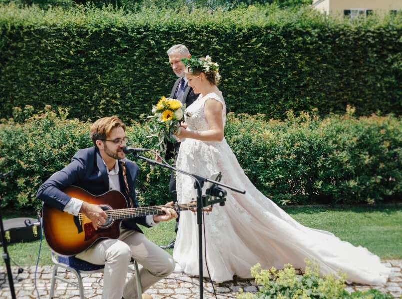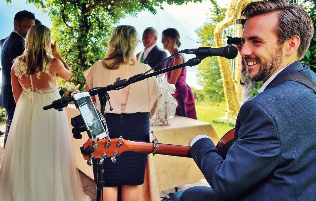 Ein freier Redner, der zugleich live singt und sich an der Gitarre begleitet, später beim Sektempfang live spielt und dem Moment “das gewisse Etwas” verleiht, die Event- und Zeitplanung übernimmt, durch den gesamten Tag führt und sämtliche Highlights (an-)moderiert und am Abend als DJ für die Partystimmung sorgt.