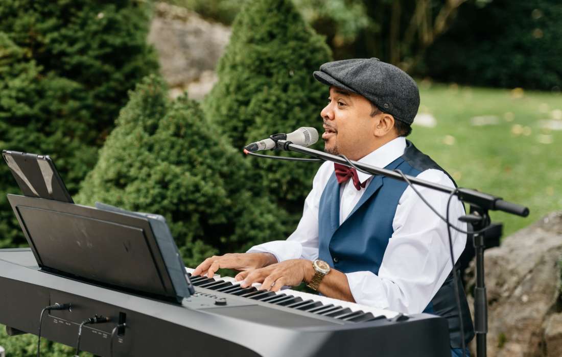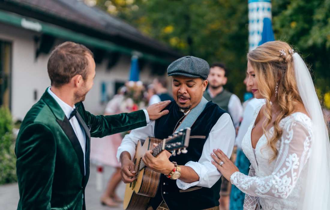 Von den berührenden Klängen bei der Trauung und der entspannten Stimmung beim Sektempfang bis zur energiegeladenen Feier am Abend begleite ich euch durch den gesamten Tag. Mit einem individuell abgestimmten Repertoire aus romantischen Songs, Lieblingsliedern und Partymusik sorge ich dafür, dass jede Phase eurer Feier lebendig wird und die Tanzfläche in Bewegung bleibt.