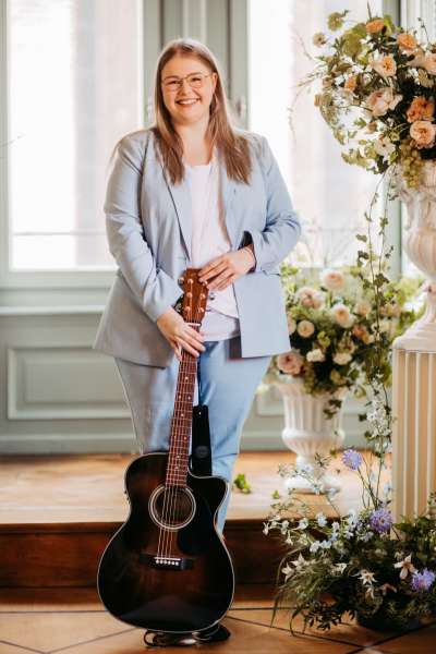 Seit vielen Jahren steht sie auf der Bühne und erzählt mit ihrer Musik Geschichten. Ihre Vielseitigkeit macht sie zur perfekten Begleitung für jeden Hochzeitstag: Von sanften Klängen bis hin zu echten Partyklassikern – sie trifft immer den richtigen Ton. Dabei legt sie großen Wert auf die persönliche Verbindung zu ihren Paaren. Vor jeder Buchung steht ein ausführliches Kennenlernen, um die Wünsche des Brautpaares perfekt umzusetzen.