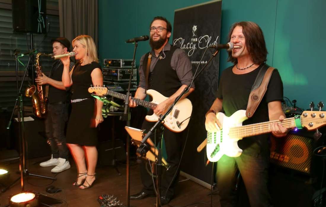 Dass alles klappt – das ist organisatorisch das Wichtigste am wichtigsten Tag eures Lebens! The Classy Club hat extra für Hochzeiten ein eigenes Konzept entwickelt und über die Jahre in der Zusammenarbeit mit vielen Brautpaaren immer weiter verfeinert. Wir wissen, was eine Hochzeit zu einem unvergesslichen, entspannten und fröhlichen Ereignis macht. Für die Romantik ist das Brautpaar zuständig, für die feierliche oder ausgelassene Stimmung wir! Standesamtliche / Kirchliche / Freie Trauung: The Classy Club begleitet unplugged eure standesamtliche, kirchliche oder freie Trauung und spielt für euch ausgewählte Lovesongs zum romantischsten Moment eures Hochzeitstages. Kaffee-/Sekt- oder Cocktailempfang: Bei diesem Arrangement begleitet The Classy Club den Empfang eurer Gäste an der Location und sorgt mit einem dezenten Hintergrundprogramm aus Pop-, Jazz- und Swingballaden für eine romantische und exklusive Atmosphäre. Abendprogramm: Nach eurem festlichen Dinner eröffnet The Classy Club mit eurem Hochzeitstanz die Tanzfläche. Über den Abend verteilt spielt die Band mehrere Sets internationaler Partymusik, abgestimmt auf eure Musikwünsche. Selbstverständlich ist auch für eine dezente Unterhaltungsmusik während eures Dinners und in den Live-Pausen gesorgt und die Bandmitglieder sowie eventuell zusätzliche Techniker stehen euch in allen Belangen (z. B. Mikrophon- und Media-Player-Bereitstellung) für evtl. Vorträge der Gäste unterstützend zur Seite. The Classy Club präsentiert eine top professionelle Show mit internationalen Pop-, Rock- und Dancefloor-Highlights der letzten 40 Jahre – mit The Classy Club erlebt ihr immer ein musikalisches Event der Extraklasse! Die Musiker von The Classy Club sind ausschließlich Profimusiker – für unsere Kunden die Garantie, dass die Hochzeit musikalisch auf höchstem Niveau gestaltet wird. Um das zu gewährleisten, ist für uns eine umfassende und individuelle Beratung im Vorfeld Ihrer Veranstaltung selbstverständlich.