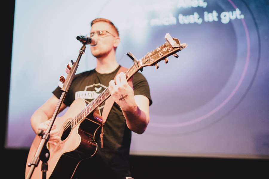 Musik begleitet mich seither täglich. In meiner Freizeit arbeite ich viel mit Aufnahmen, bearbeite Songs und spiele E-Gitarre – einfach, weil es mir Freude macht, kreativ zu sein. Über die Jahre durfte ich bereits mehrere Trauungen musikalisch begleiten. Ich singe regelmäßig in einer Gemeinde-Band auf der Bühne und begleite auch Taufen und Segnungen musikalisch.