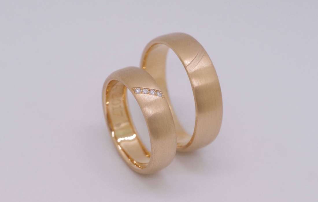 Alternativ zu den Trauringkursen bieten wir die Anfertigung eurer individuellen Trauringe an. Nach einem persönlichen Beratungsgespräch entwerfe ich eure Eheringe genau nach euren Vorstellungen und fertige diese dann in Handarbeit an.