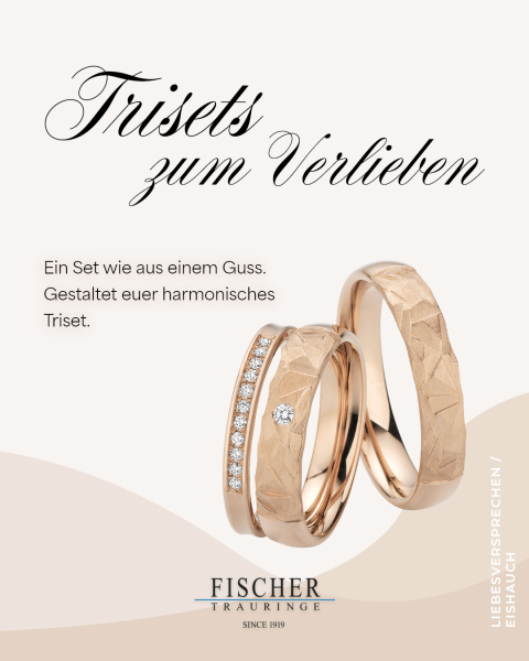 Mit Fischer Trauringen entscheiden sich Paare für Qualität „Made in Germany“, für gelebte Verantwortung und für ein Symbol, das ihre Liebe einzigartig widerspiegelt.