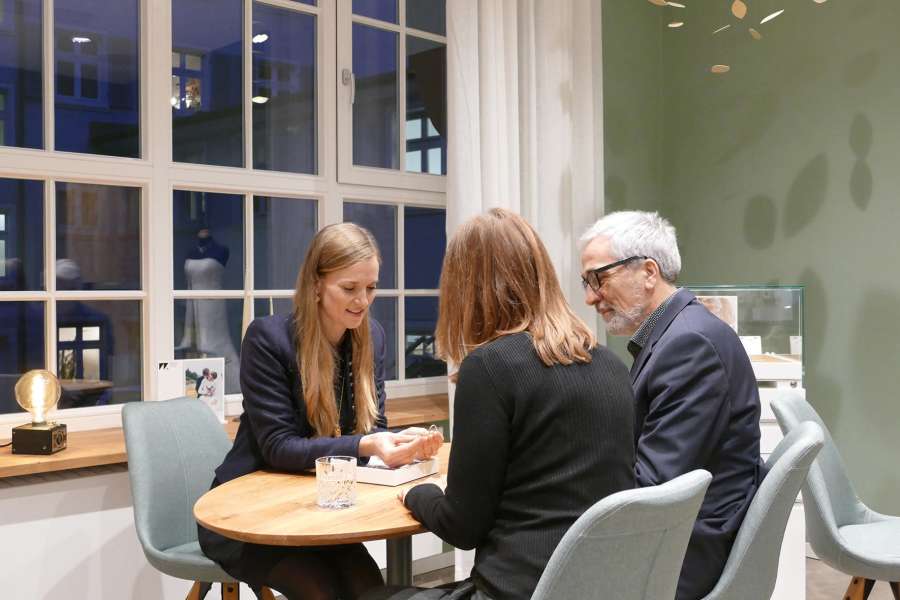 In ruhiger, angenehmer Atmosphäre nehmen wir uns bewusst Zeit für Sie. Bei uns stehen persönliche Beratung, mit Zeit für Ihre Ideen und Wünsche und höchste Qualität im Vordergrund. Wir führen eine sehr schöne umfangreiche Auswahl an Verlobungsringen, Trauringen, Memoireringen sowie Brautschmuck – mit Designs, die berühren, sich jederzeit gut anfühlen und Materialien, die ein Leben lang Freude bereiten.
