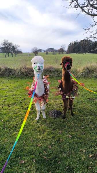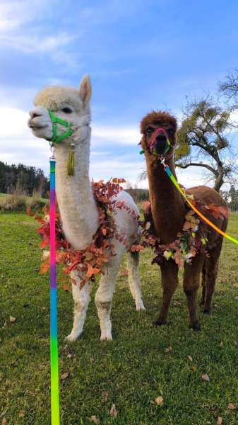 • Wir kommen mit 2 Alpakas, diese können gerne von euch festlich geschmückt werden:)