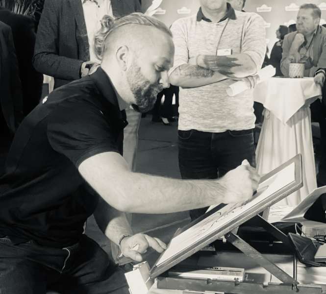 beidhändiger Schnellzeichner Clemens Steinhauer