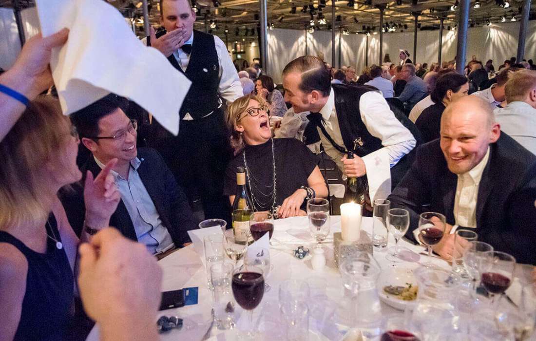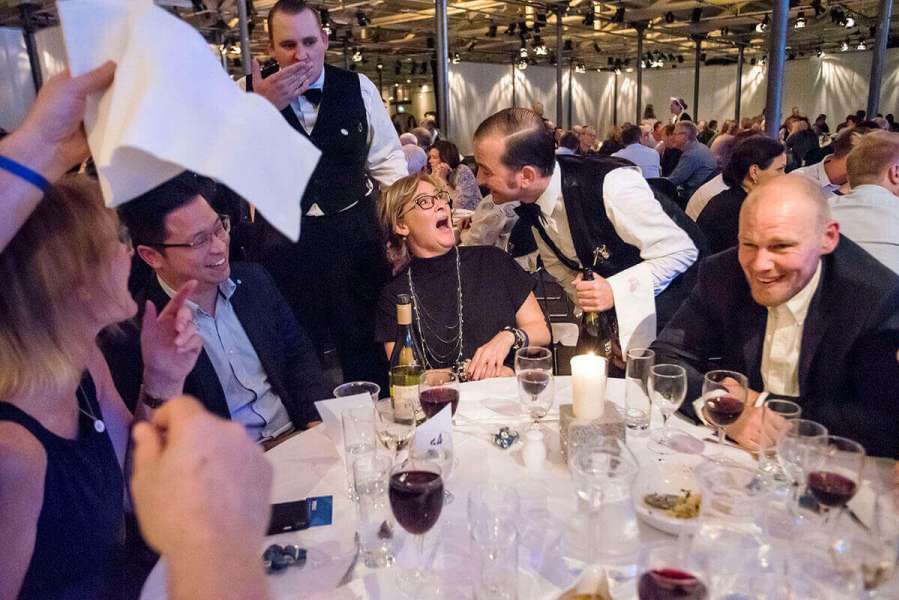 Ob bei einer kleinen oder großen Hochzeitsfeier – unsere schlagfertigen Comedy Kellner machen Ihr Event unvergleichlich. Seit 1985 verleihen wir jedem Anlass das gewisse Extra. Mit Charme, Schlagfertigkeit und Humor sorgen wir für echte Glücksmomente und bleibende Erinnerungen.