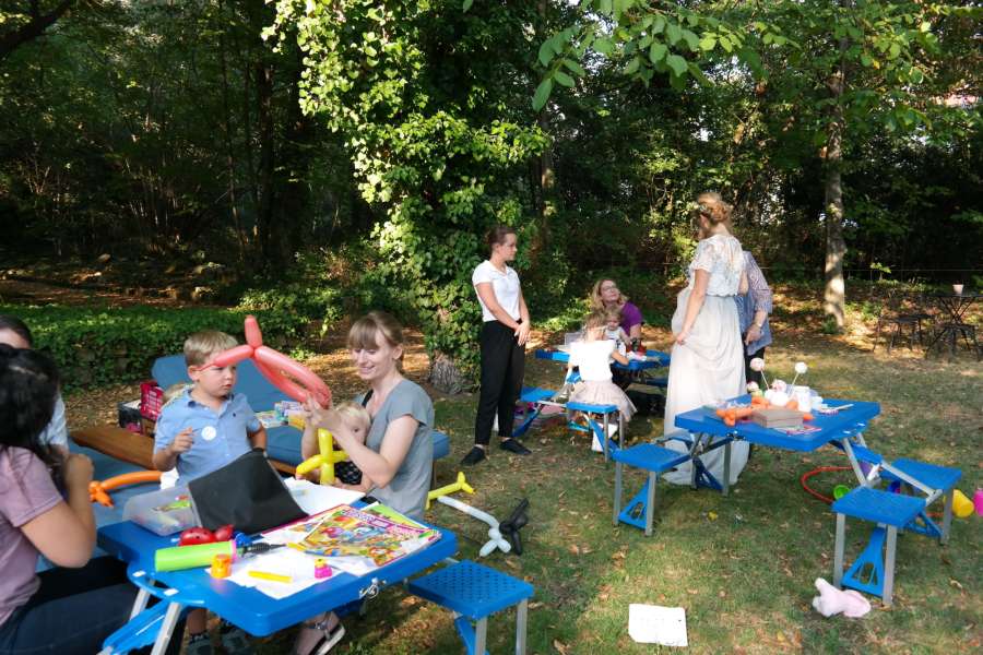 Wir machen den Aufenthalt Ihrer kleinen Hochzeitsgäste sehr bunt und abwechslungsreich. Die Kinder haben ein Programm von z. B. Kinderschminken, Seifenblasenspielplatz, Kreativstation, Glitzertattoos, Ballonmodellage und großer Spieleaktionskiste, je nach Wunsch und Möglichkeit.