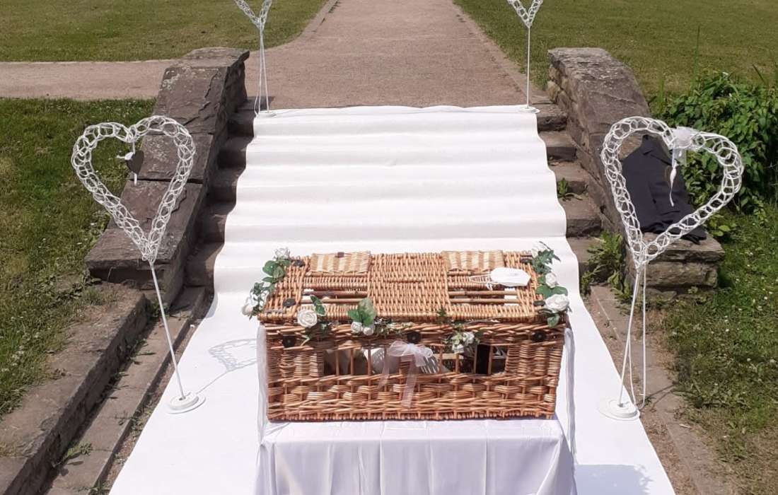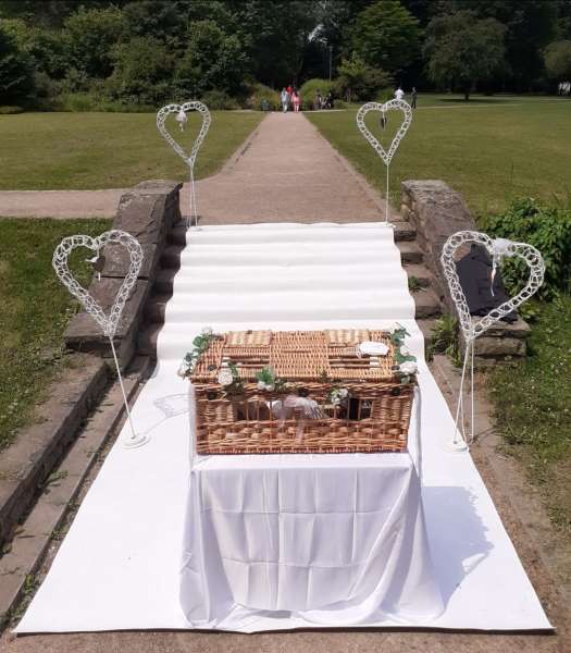 Ein weißer Teppich (2m x 5m) und den 4 Herzenständer wären 30,- EUR zusätzlich.
