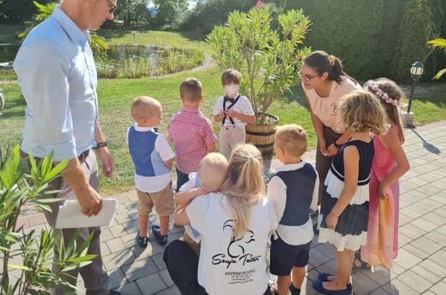Für den perfekten Spaßfaktor sorgen verschiedene Indoor- und Outdoorspiele, Gruppen- und Bewegungsspiele, Malen, Basteln und auf Wunsch Kinderschminken oder eine Schatzsuche. Die Betreuung beim Kindertisch (Hilfe beim Fleischschneiden etc.) oder das Vorlesen von Büchern zählen ebenso zu unserem Aufgabengebiet. Die Exklusivbetreuung für die Kinder des Brautpaares ist ebenso auf Anfrage möglich. Gerne betreuen wir nach Möglichkeit auch mehrsprachig. Bei Anfragen bitte unbedingt folgende Infos bekanntgeben: Datum, Kinderanzahl und -alter, Ort, Dauer, Wünsche und Telefonnummer. Fragen Sie gleich unverbindlich Ihren Wunschtermin an oder rufen Sie mich gerne an! :-)