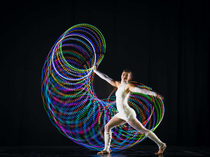 UV Neon & Schwarzlicht Shows: Die Reifen leuchten hell in intensiven fluoreszierenden Farben - ein wahrhaft magisches Spektakel.
