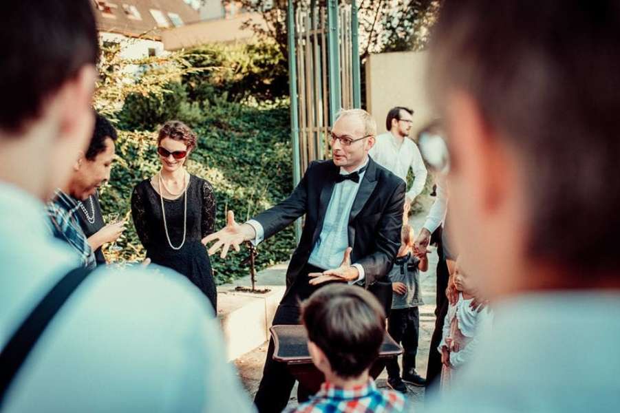 Magie zum Greifen nah und dennoch unerklärlich: Dafür mischt sich Maximus der Magier bei Ihrer Hochzeit unter die Gäste und zaubert immer wieder eine neue, spannende Atmosphäre im kleinen Kreis. Nur ein paar Zentimeter sind die Zuschauer dabei vom Geschehen entfernt - für viele Menschen eine unvergessliche, faszinierende und magische Erfahrung....ideal um Pausenzeiten (Fotoshooting, Empfang, zwischen den Gängen des Essens) mit erstklassiger magischer Unterhaltung und einem ganz besonders magischen Gefühl zu überbrücken.