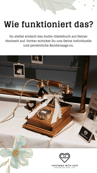 In der heutigen Zeit, in der die Digitalisierung und Technologie immer mehr Einzug in unser Leben halten, ist es wichtig, Traditionen auf eine kreative und moderne Art aufleben zu lassen. Mit VOICEMAIL WITH LOVE könnt ihr auf eine einzigartige Weise die Wünsche eurer Gäste aufnehmen und für immer festhalten.