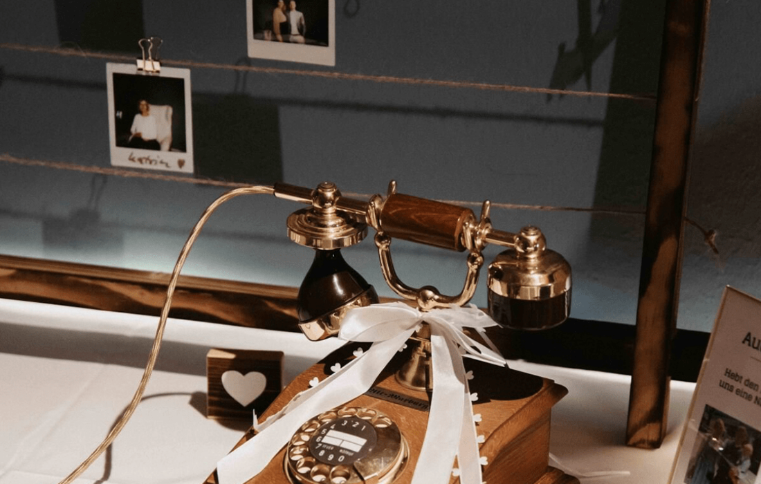Mit unseren Telefonen für eure Hochzeit, oder auch Audio-Gästebücher genannt, möchten wir Euren besten Tag zu einer einzigartigen Erinnerung machen, indem Ihr die Glückwünsche und Grüße eurer Gäste auf Band festhaltet.