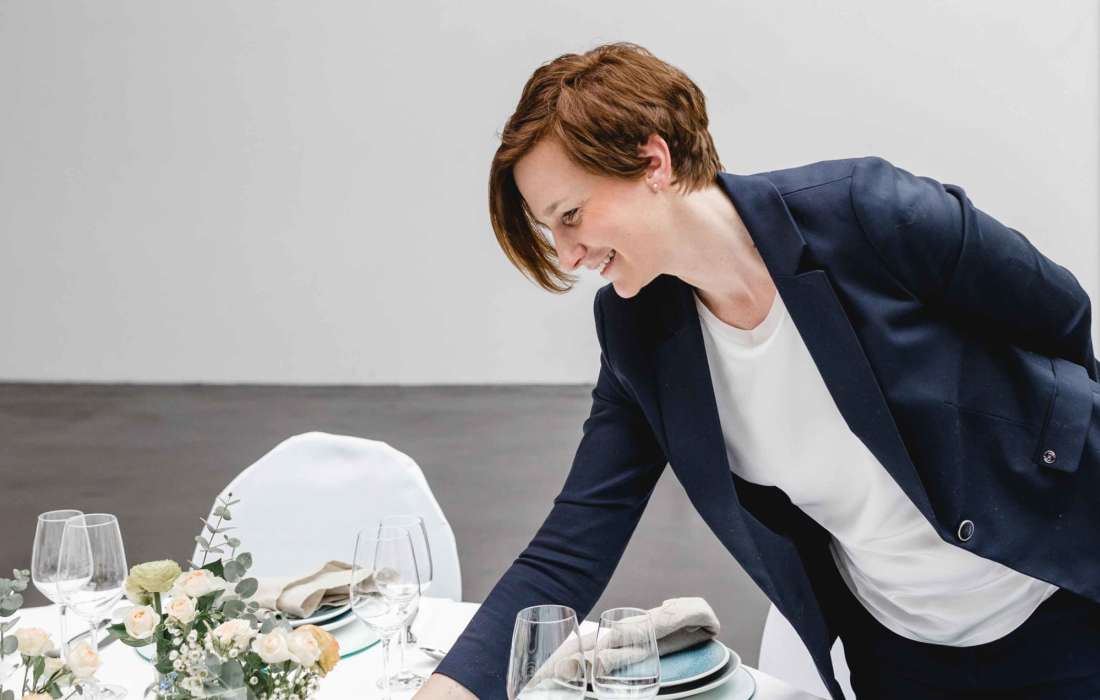 | Besonderheiten / Zusatzleistungen | Full-Service Planung, Teilplanung, Gästebetreuung, Betreuung am Tag der Hochzeit, Budgetkalkulation, Hochzeits- und Designkonzept, Zeremonienmeisterin, wedding day coordinator |