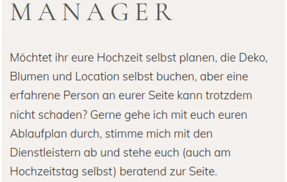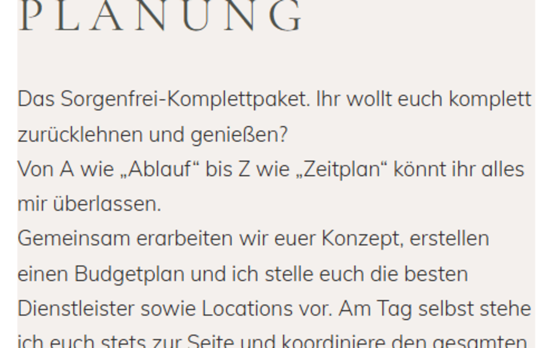 Ich plane und organisiere mein Lebelang von Herzen gern. Genau deshalb habe ich mir den Traum erfüllt Hochzeitsplanerin zu werden. Doch jetzt möchte ich eure Träume erfüllen, und euch auf dem Weg zu eurem großen Tag begleiten.